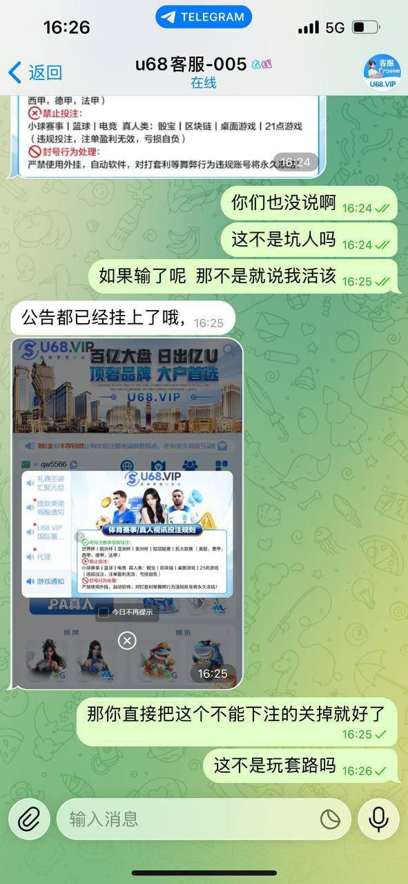 冲100U玩体育赢100U却遭平台拒付,理由居然是“只能玩公告赛事”?!😎